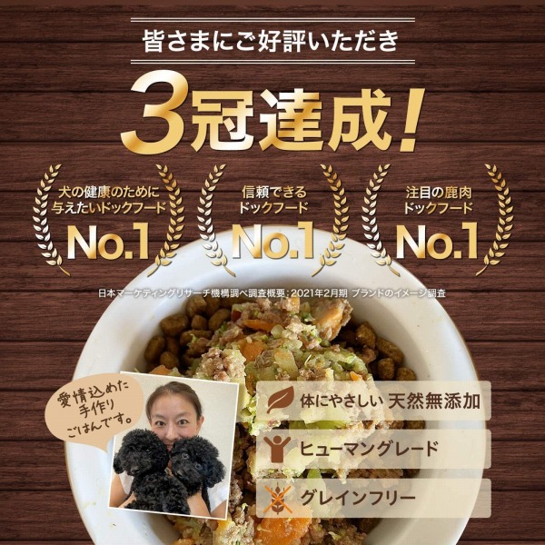 天然の国産ジビエと自家農園で栽培した無農薬野菜(鳴門金時を除く)をつかって、うちの子に食べさせたいと思うごはんを愛情を込めて手作りしています。素材は栄養価を損なわないよう、低温でコンベクションオーブンをつかって蒸しあげたものをミックス。