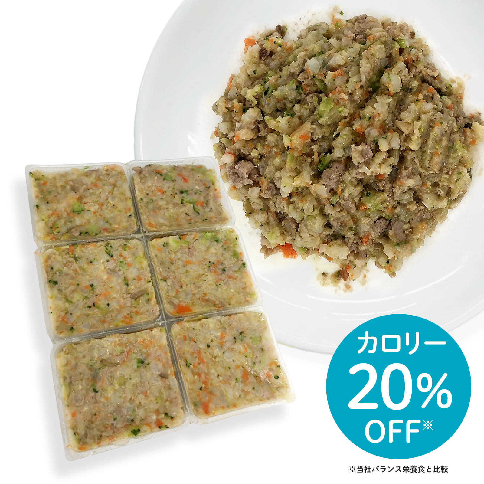 当社バランス栄養食よりカロリー20%カット!最新の2016年AAFCO栄養基準と2006年NRC飼養標準に準拠。ダイエットに最適な高タンパク・低脂質のキハダマグロをメインに、糖の吸収がゆるやかになるよう低G1値の玄米を炭水化物源として使用。腹持ちが良いよう食物繊維が多いキャベツ、ブロッコリー、まいたけに、ミネラル源として牡蠣、鹿骨、鹿レバーをプラスしました。