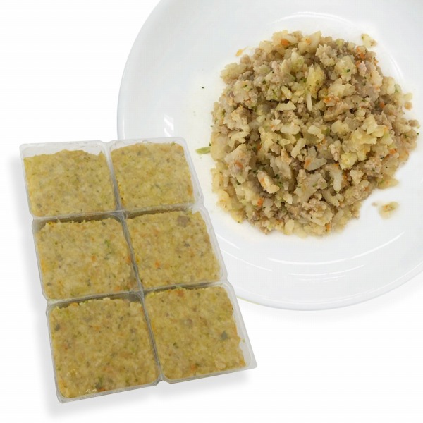 手作りご飯に慣れさせてあげるため、まずは20%程度の量をこれまでのフードに置き換えてトッピングしてあげてください。(問題が無いようであれば、様子をみながら少しづつ置き換える分量を増やしてください。)