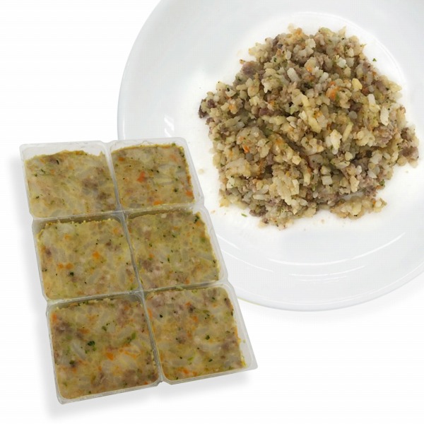手作りご飯に慣れさせてあげるため、まずは20%程度の量をこれまでのフードに置き換えてトッピングしてあげてください。(問題が無いようであれば、様子をみながら少しづつ置き換える分量を増やしてください。)