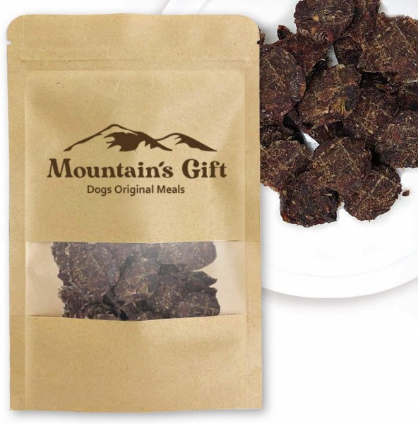 - 添加物、保存料はいっさい使用しておりません。開封後は冷暗所にて保存してください。適切な給与量は犬種・体重・年齢・性質・運動量などにより異なりますが、目安として1日の必要カロリー量を超えないよう誤飲に注意して、飼い主様の目の届く範囲であげてください。ジャーキーの表面に白い粉が見える場合がありますが、これは肉のアミノ酸成分の結晶で問題はありません。