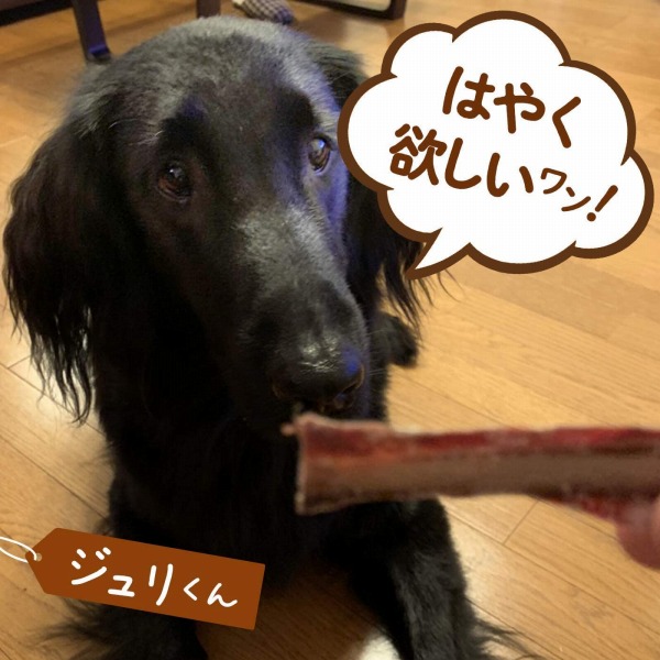 - 添加物、保存料はいっさい使用しておりません。適切な給与量は犬種・体重・年齢・性質・運動量などにより異なりますが、目安として1日に1本までを上限として誤飲に注意して、飼い主様の目の届く範囲であげてください。骨はカルシウム分が多いので、あげすぎると便秘になることがあります。また、翌日の便に骨が混じることがありますが問題はありません。