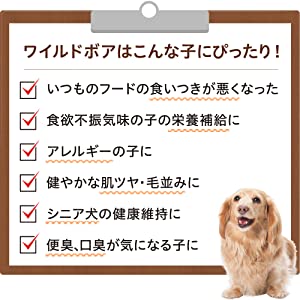 最適な食材です。 - 嗜好性が非常に高く消化効率が良い猪肉は、新陳代謝の向上や疲労回復に効果的なビタミンB群やコラーゲンが豊富。元気のない時や、痩せ気味の子の栄養補給におすすめです。